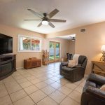 Updates include a newer roof, newer air conditioning system, and updated bathrooms. Outside, the private backyard offers a covered patio and mature landscaping, ideal for casual gatherings or quiet evenings. The home also features solar panels for energy efficiency and long-term savings. With no HOA fees, this property delivers both comfort and value. A wide driveway with space for 5 to 6 vehicles provides plenty of parking, including room for an RV.