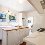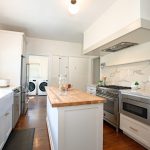 The sun-drenched living room features arched transitions, rich hardwood floors, and a decorative tiled fireplace showcasing original Ernest Batchelder artisan work—creating the perfect setting for both relaxing and entertaining. The kitchen is a showstopper, complete with a butcher block island, farmhouse sink, and high-end appliances—all framed by clean subway tile and elegant finishes. Each bathroom boasts exquisite artisan tilework and handpicked fixtures, while the colorful Spanish-tiled staircase adds character and warmth to the home’s historic soul. Upstairs, spacious bedrooms offer serene treetop views and abundant natural light.