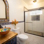 Each bathroom boasts exquisite artisan tilework and handpicked fixtures, while the colorful Spanish-tiled staircase adds character and warmth to the home’s historic soul. Upstairs, spacious bedrooms offer serene treetop views and abundant natural light.
